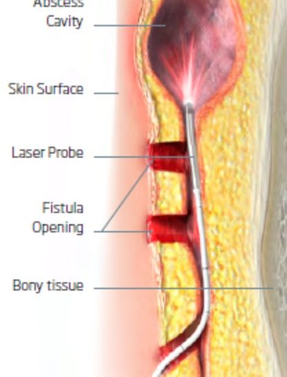 La fibra laser sigilla il tramite fistoloso. Non vi sono ferite chirurgiche: la cura della fistola diventa mini-invasiva e può essere eseguita in Day-Surgery